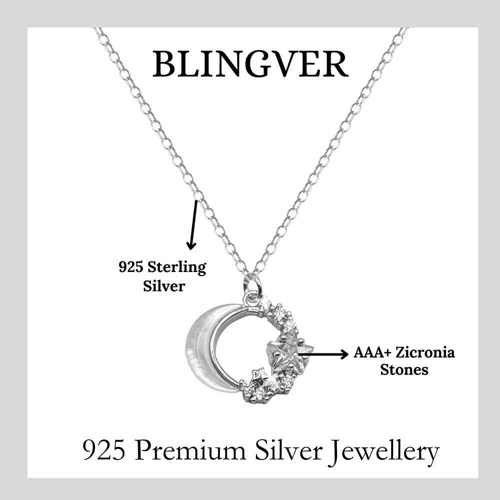 925 sterling silver crescent moon with stars pendant with chain